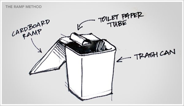 可用一個大塑膠垃圾桶,裡面放食物或一座小橋引誘老鼠跳進去。桶子夠高又光滑時牠們無法爬出。但要注意!若桶內有一點水,老鼠可能會溺斃。若放在室外,請避免下雨淋入水。也可放一塊石頭讓牠們站立,並經常檢查。